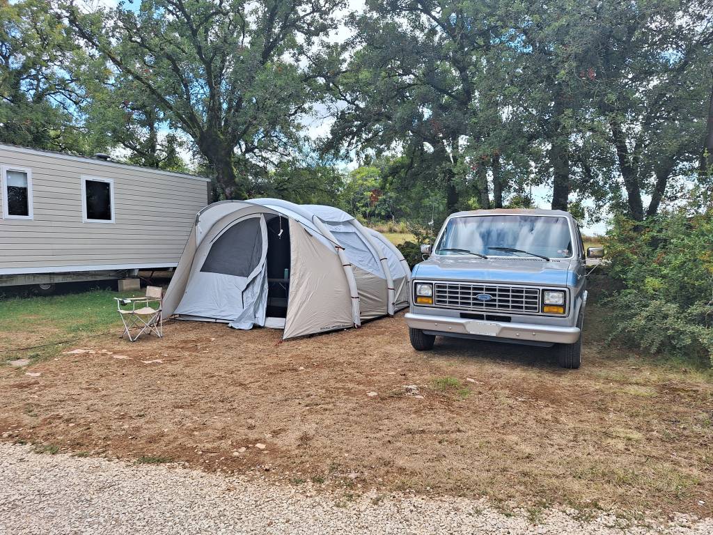 14 emplacements nus de camping, ombragés, semi-ombragés, et équipés d'un point électrique, barbecues autorisés.