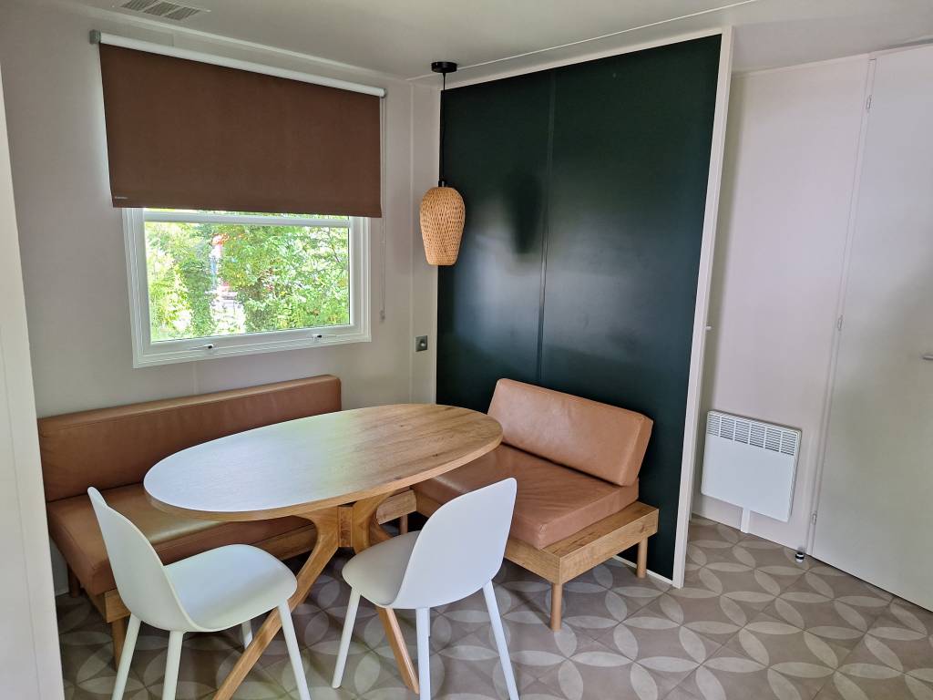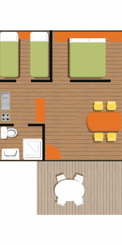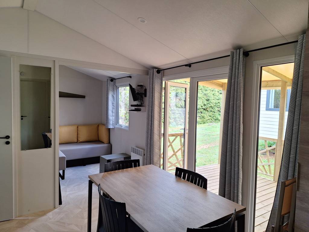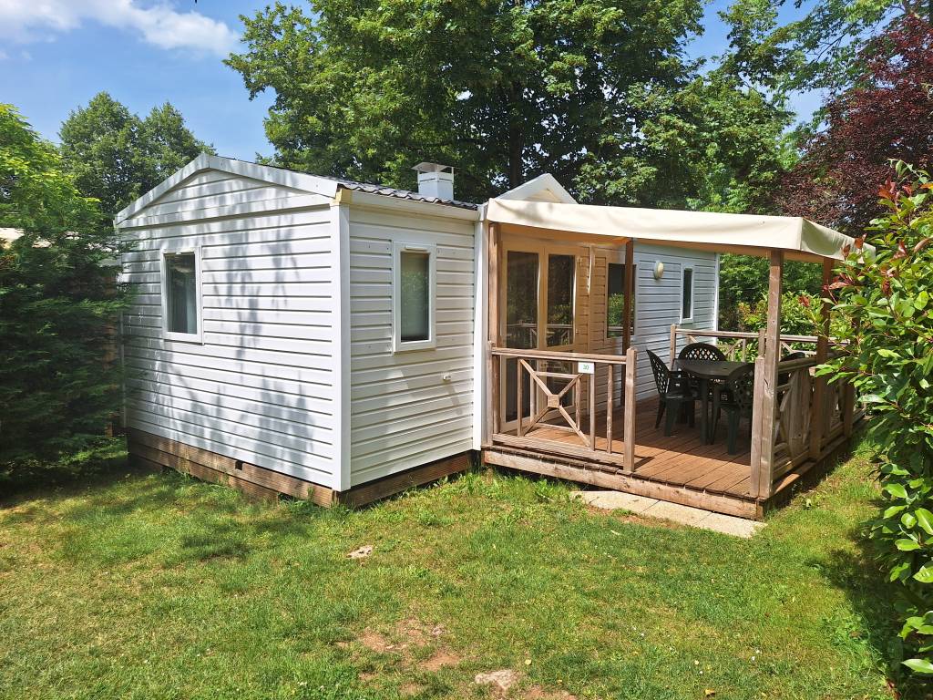 Mobil Home 2 chambres avec terrasse semi-couverte pour 4 personnes.