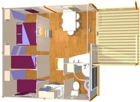 Mobil Home 3 chambres avec terrasse semi-couverte équipé pour 6 personnes.