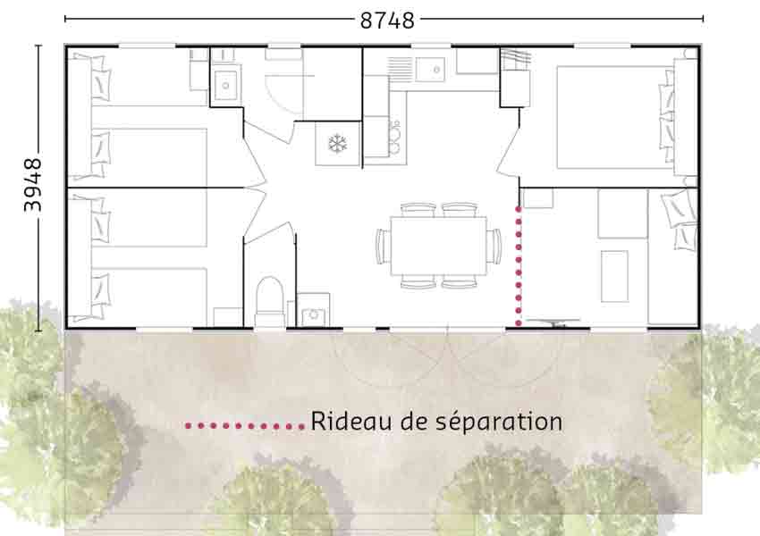 Mobil Home 3 chambres avec terrasse couverte équipé pour 6/8 personnes.