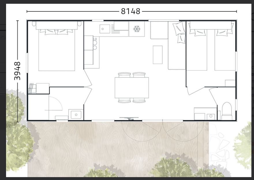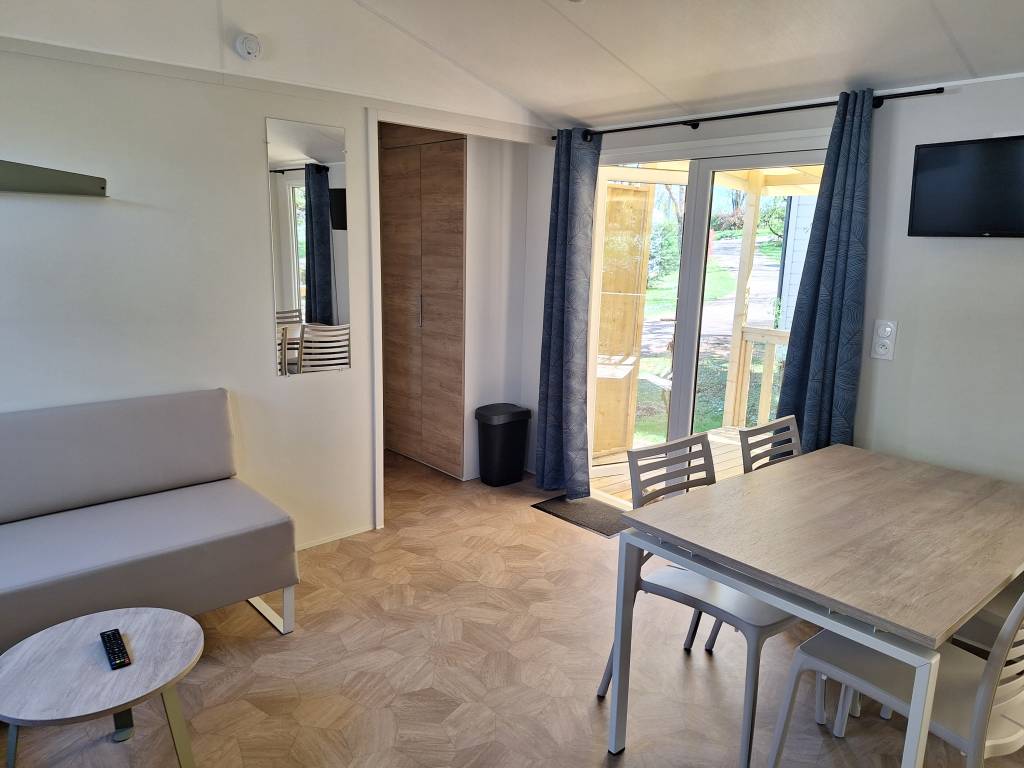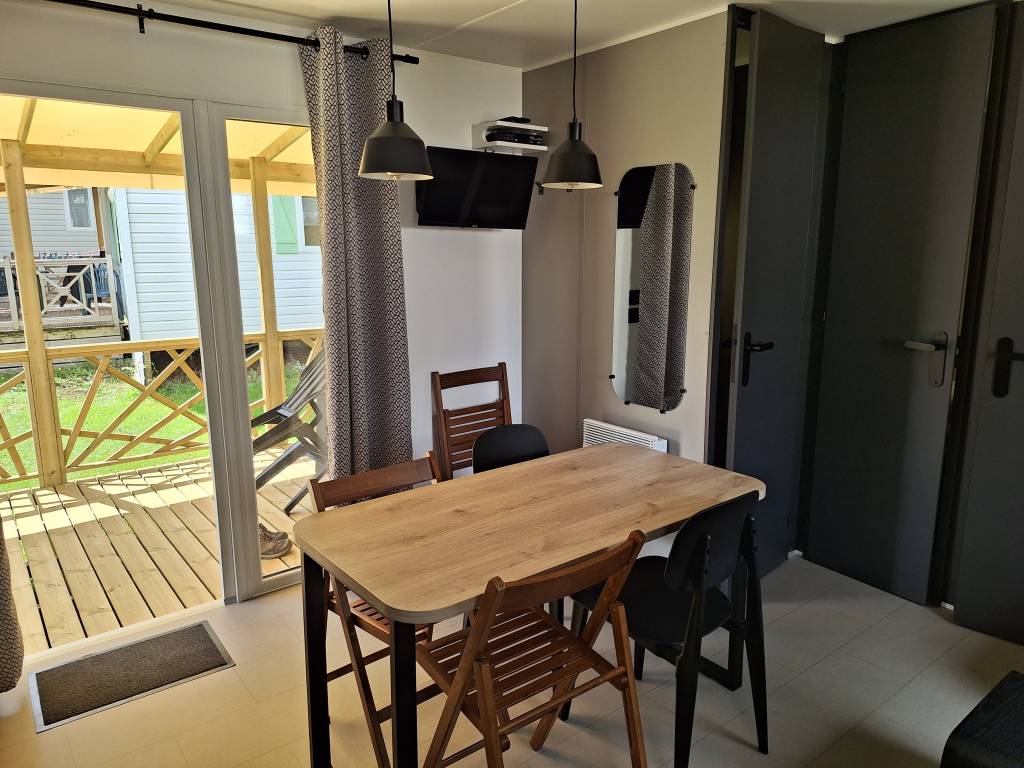 Mobil Home 2 chambres avec terrasse semi-couverte pour 4 personnes.
