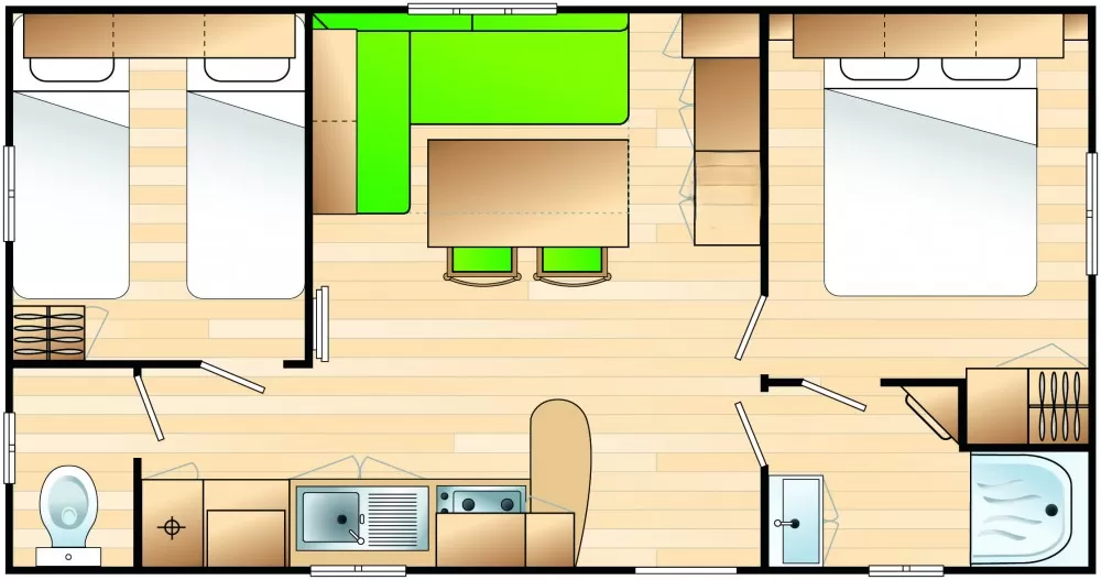 Mobil Home 2 chambres équipé pour 4 personnes.